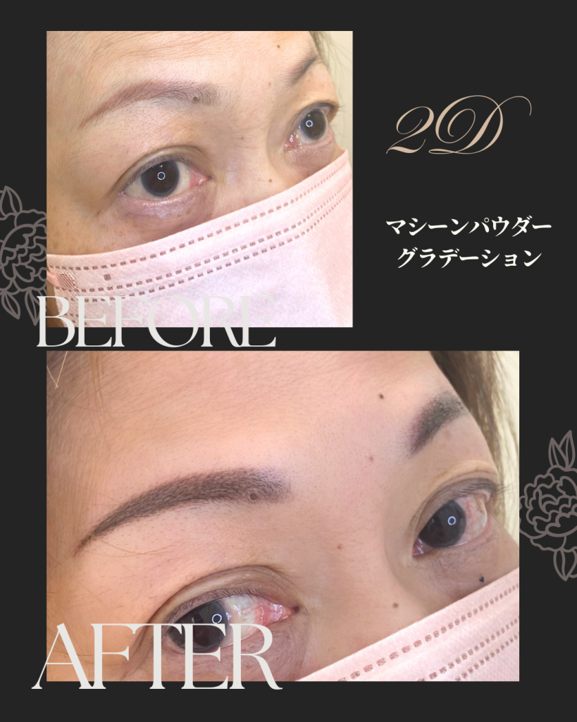 マシンパウダー技法(2D)と手彫り毛並み技法(3D)を掛け合わせた技法です。