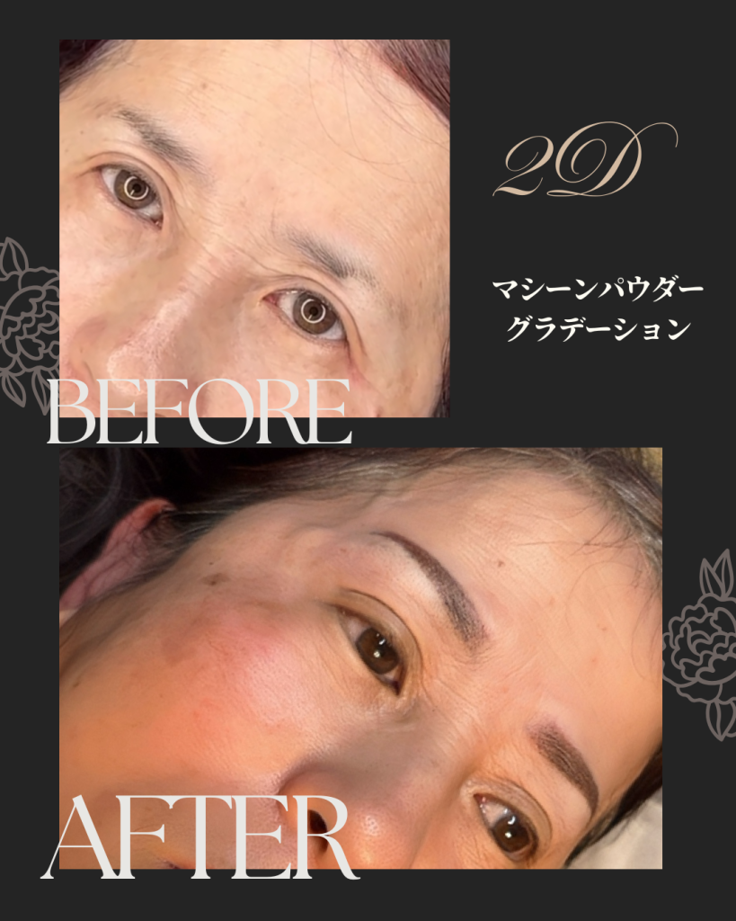 10年以上前のアートメイクをリタッチ。やや赤みの色素が残っていいましたが、落ち着いたブラウンへ。流行した眉山高めのアーチから、やわらかなアーチ眉へ。